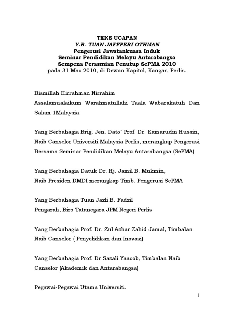 Contoh Teks Ucapan Pengerusi Majlis Pdf